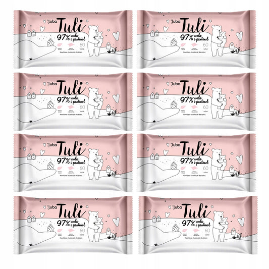 LUBA Tuli 8x60 Chusteczki dla Dzieci – 97% Wody, Pantenol, Delikatne i Hipoalergiczne