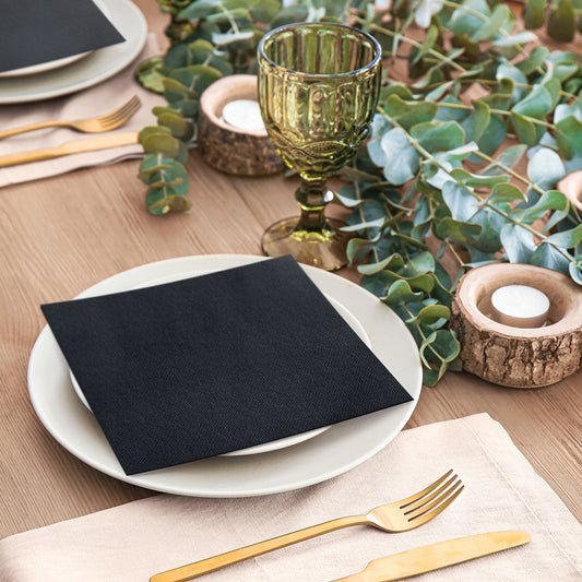 SERWETKI FLIZELINOWE AIRLAID PAW 40x40 CZARNE ELEGANCKIE IMPREZA PRZYJĘCIE - 50 szt.