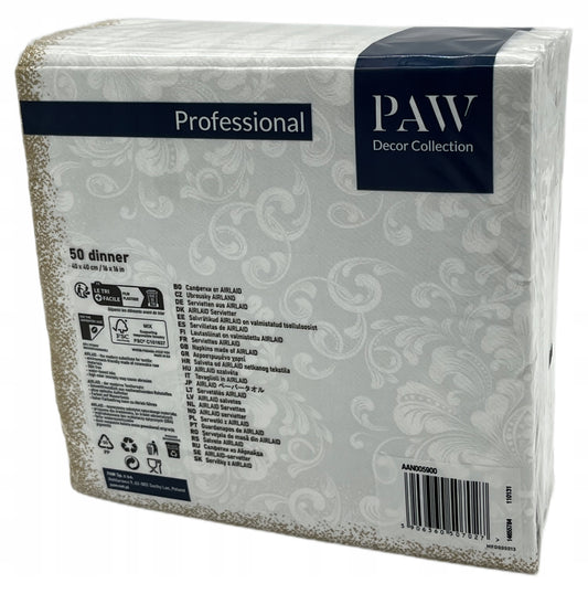 SERWETKI FLIZELINOWE AIRLAID PAW 40x40 BIAŁE WESELE CHRZCINY IMPREZA - 50 szt.