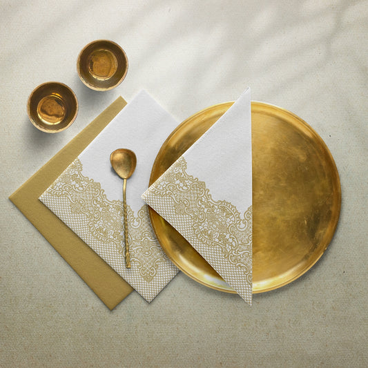 SERWETKI FLIZELINOWE AIRLAID PAW 40x40 ZŁOTE KORONKA WESELA IMPREZY PRZYJĘCIA - 50 szt.
