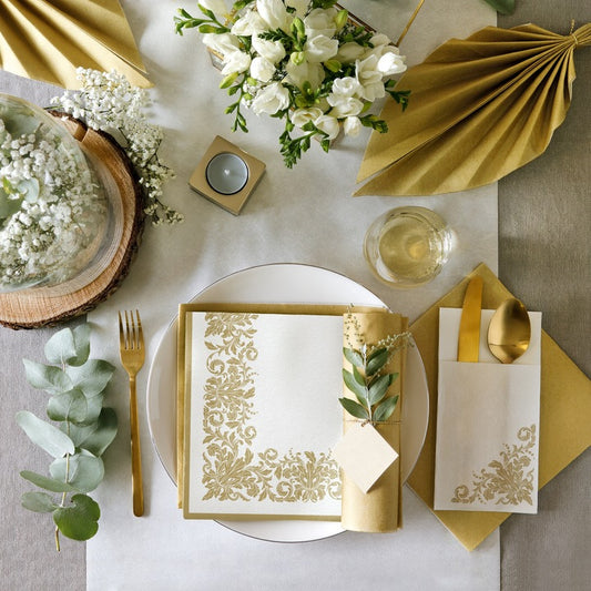 KIESZONKI na sztućce ZŁOTY ORNAMENT AIRLAID PAW PREMIUM - 25 szt